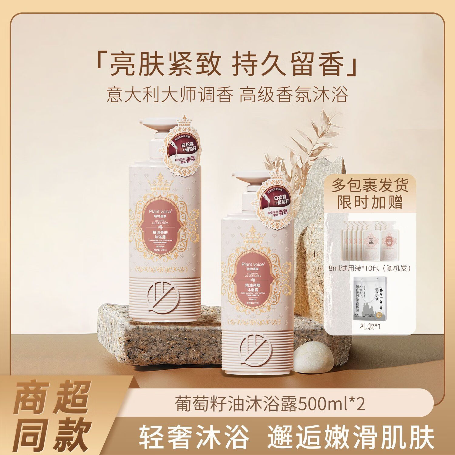 植物语录沐浴露持久留香72小时香水保湿嫩肤乳液男士女沐浴套装正品牌官方 葡萄籽沐浴露*2