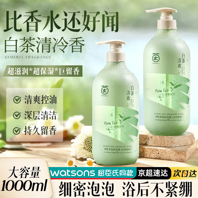 茵倩美白沐浴露持久留香72小时香水白茶香男女除螨乳液洗发水套装 【美白留香】玉龙茶香沐浴露*1瓶 1000ml