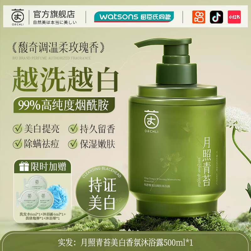 茵倩沐浴露持久留香72小时香水白茶香男女除螨乳液洗发水套装 【美白留香】玉龙茶香沐浴露*1瓶 500ml