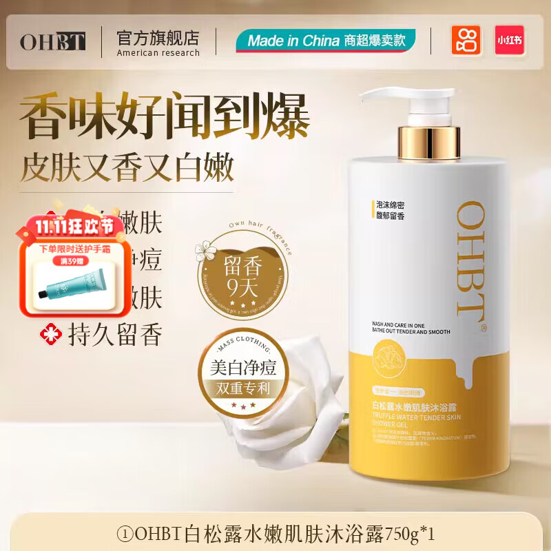 OHBT香氛沐浴露持久留香72小时香水美白祛痘除螨女男士乳液 750ml
