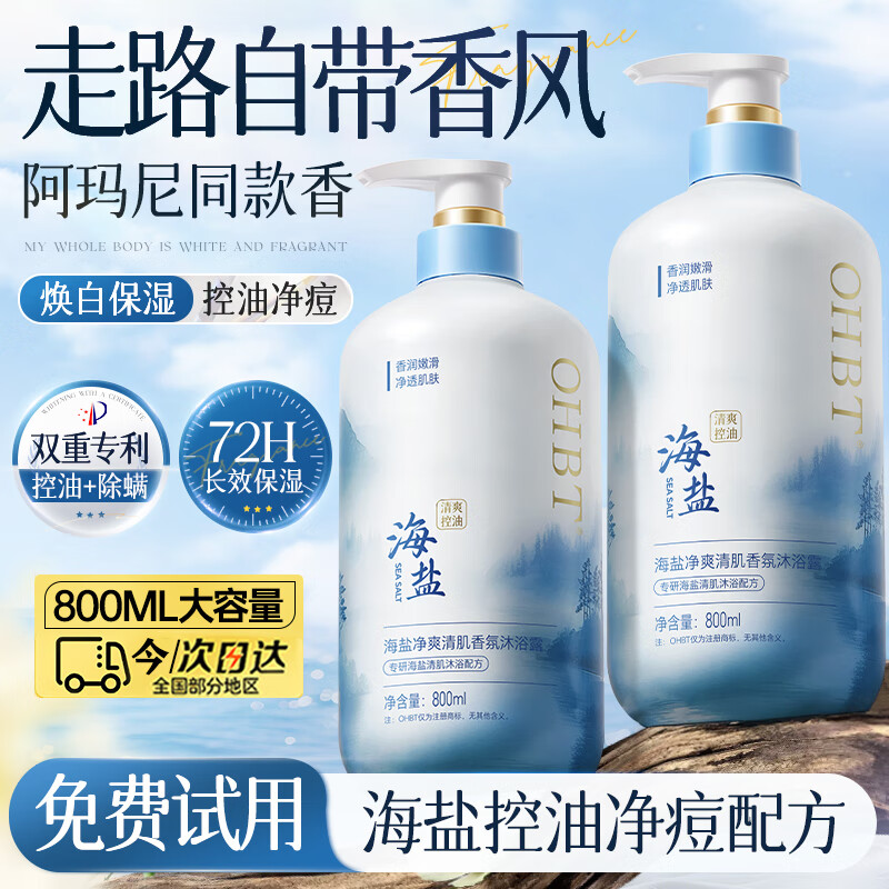 OHBT沐浴露800ml男女士持久留香72小时香体控油滋润保湿乳液金榜第一