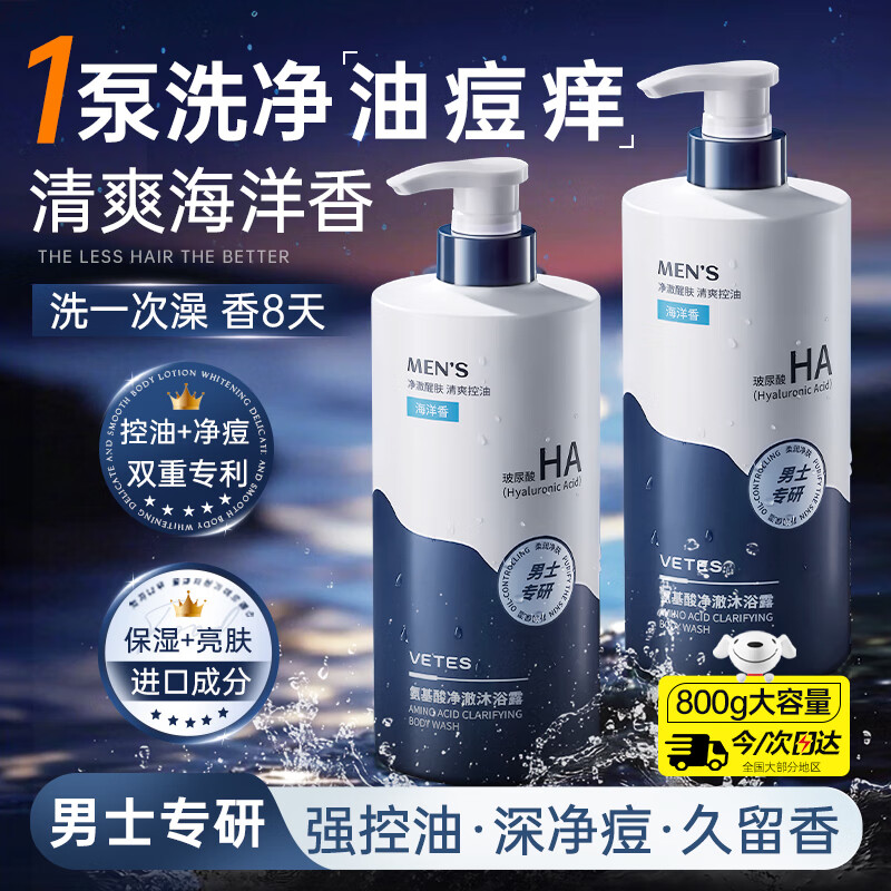 维特丝男士专用沐浴露持久留香72小时香体嫩肤止痒控油祛痘滋润保湿乳液