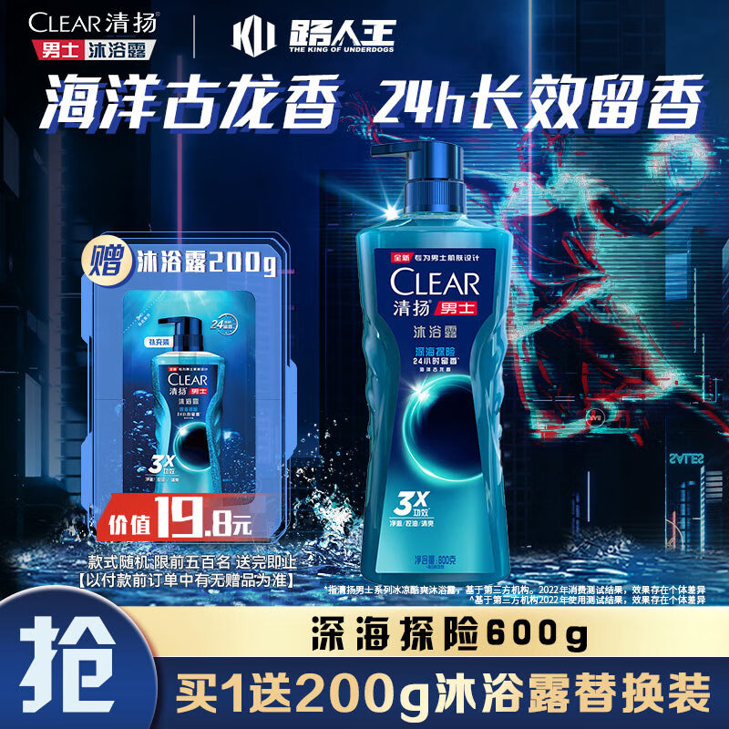 清扬(CLEAR)男士古龙香氛沐浴露留香深海探险海洋香氛600g*2新老包装交替发货