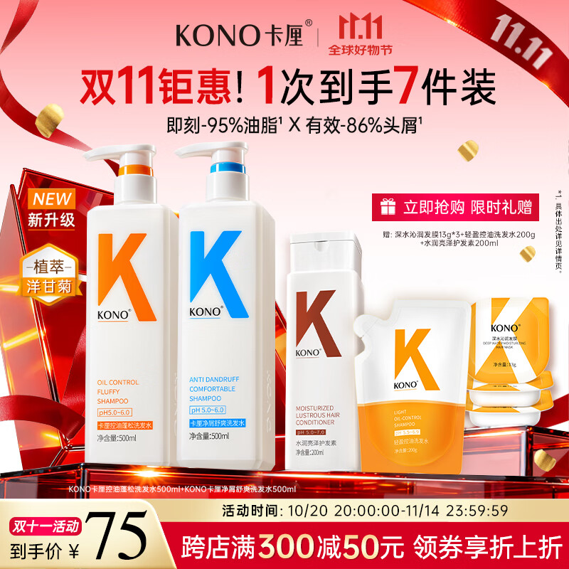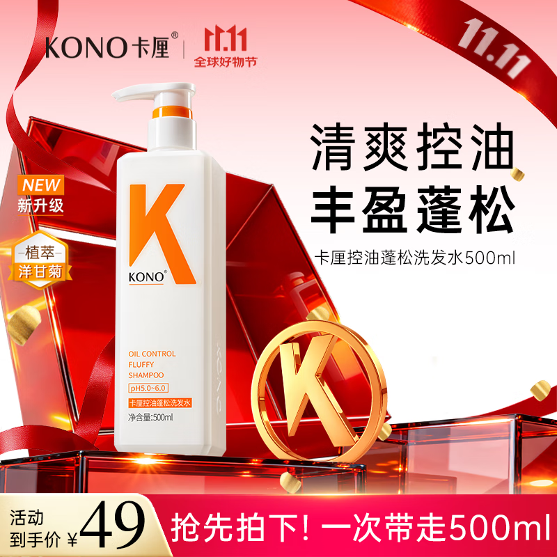 KONO卡厘经典轻盈控油洗发水500ml 清爽控油蓬松护发青少年洗发水露