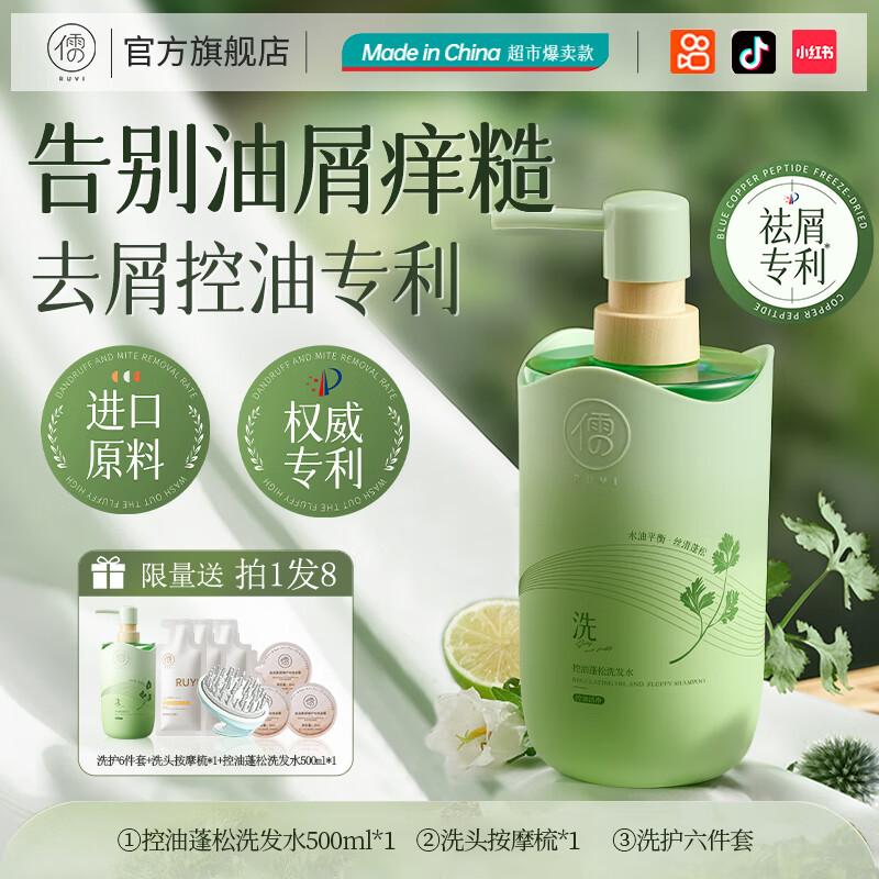 儒意洗发水控油蓬松去屑止痒洗头膏洗发露套装男女士官方正品牌旗舰店 [专利去屑控油蓬松]控油蓬松 500ml