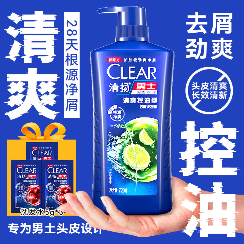 清扬(CLEAR)洗发水男士控油蓬松去屑止痒洗头膏洗发露品牌正品官方旗舰店 清爽控油去屑型-720g+赠5g*3袋