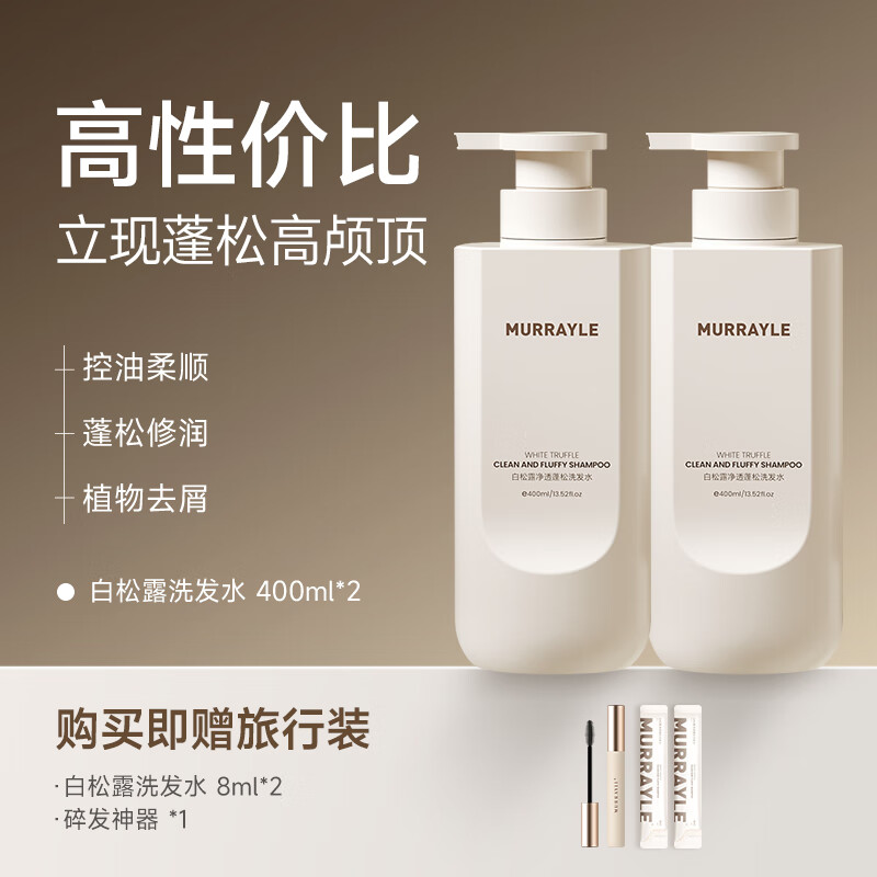 沫芮白松露洗发水控油蓬松去屑止氨基酸痒男女洗头膏官方正品牌旗舰店 白松露洗发水400mI*2