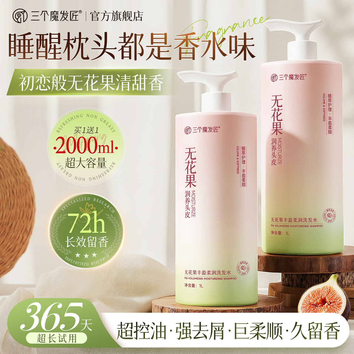 三个魔发匠无花果洗发水露控油蓬松去屑洗头膏品牌正品官方旗舰店男女止士痒 【控油去屑】无花果丰盈柔润洗发水 1000ml*1瓶