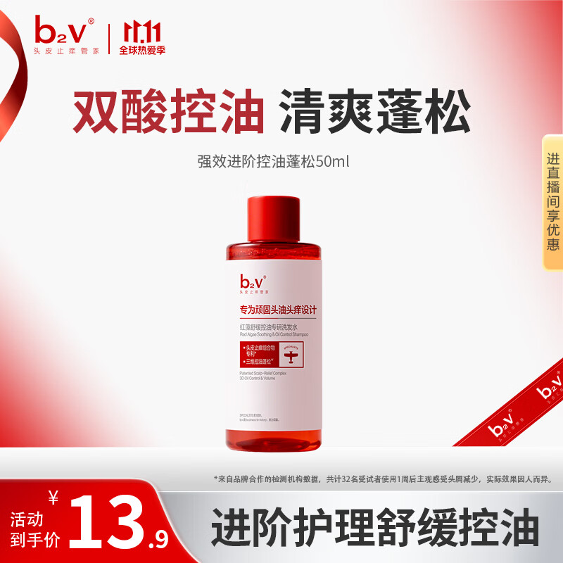 b2v强功效舒缓控油洗发水50ml小样蓬松控油去屑小瓶旅行装