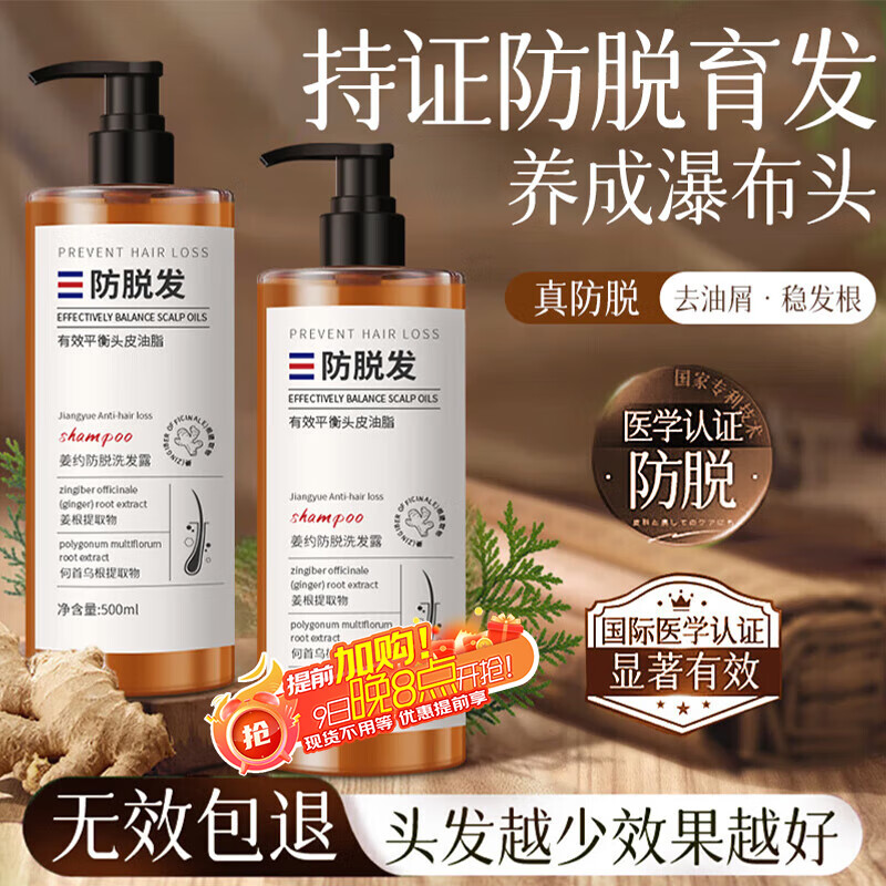 姜约(JIANGYUE)防脱育发洗发露防脱发育发固发养发控油去蓬松去屑止痒洗发水