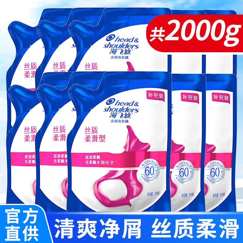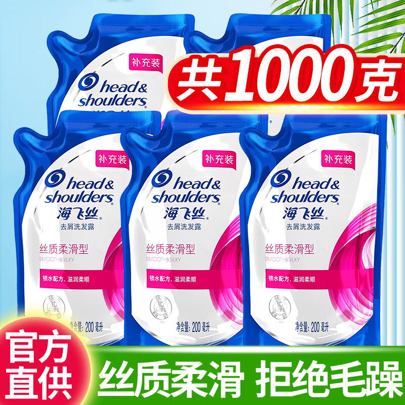 海飞丝洗发水补充装 丝质柔滑去屑去油家庭装洗发水 丝质柔滑200g*5袋