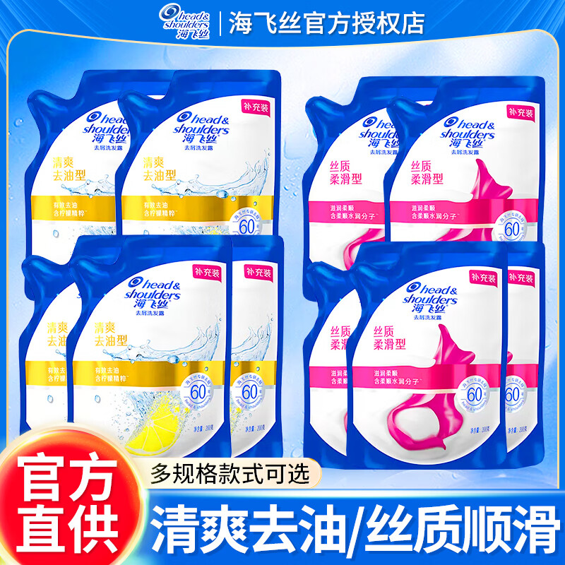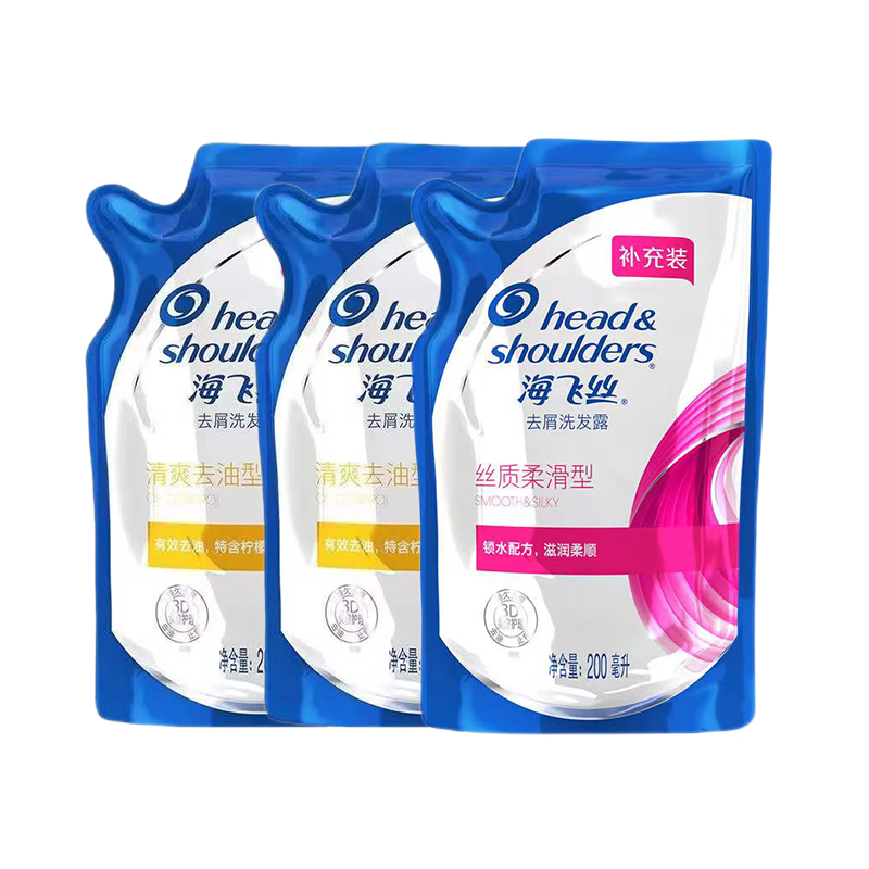 海飞丝洗发水 丝质柔滑+清爽去油200ml/g*3袋补充装 新老包装香型随机发