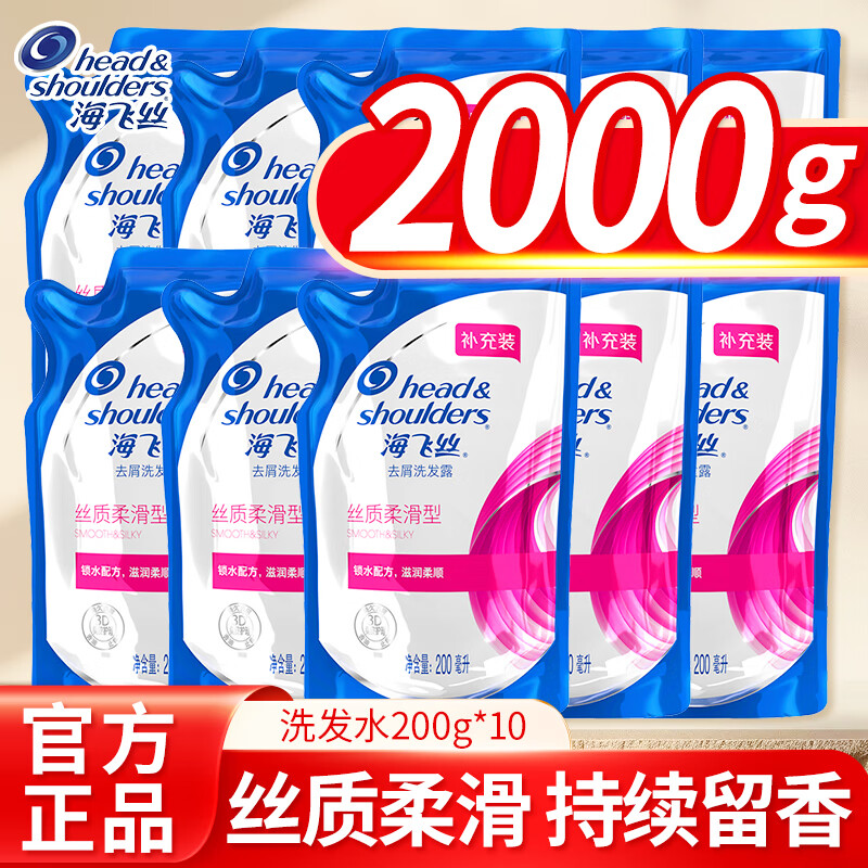 海飞丝洗发水200g袋装补充装去屑去油家庭实惠装 海飞丝丝质柔滑洗发水200g*10袋