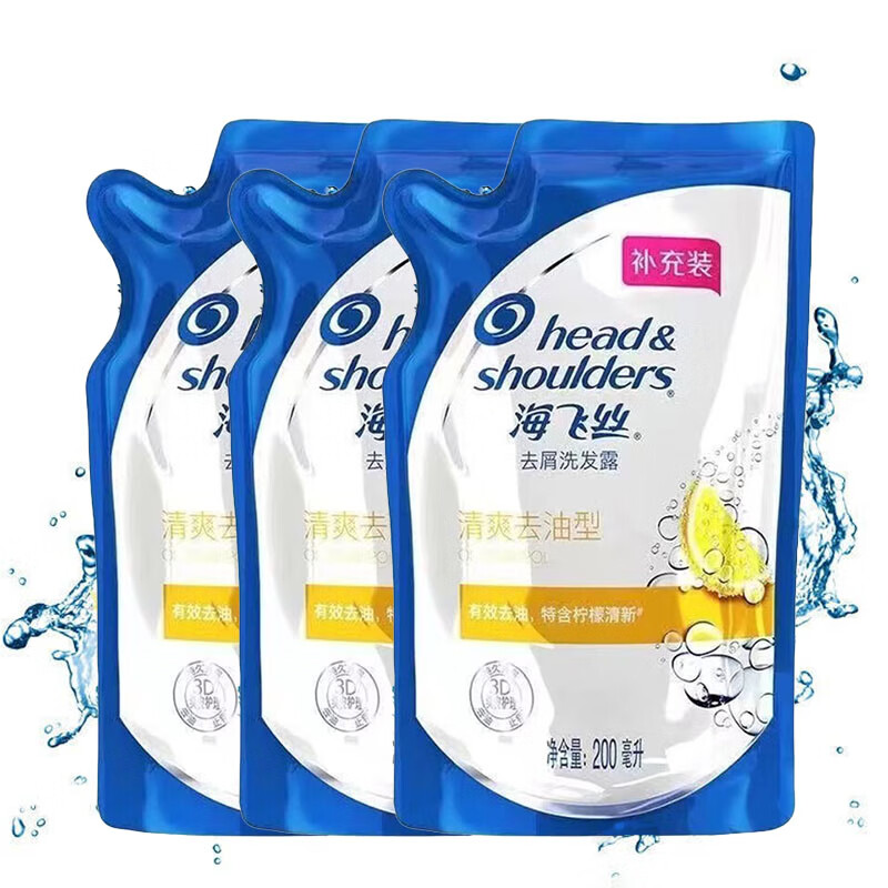 海飞丝洗发水 清爽去油200ml/g*3袋补充装【共3袋 】(新老包装随机发)