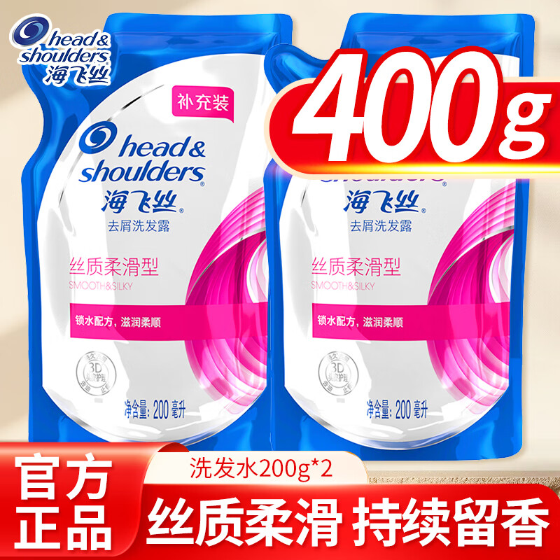 海飞丝洗发水 丝质柔滑200ml/g*2袋补充装(新老包装随机发)【共2袋 】