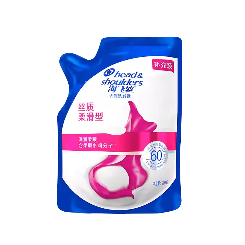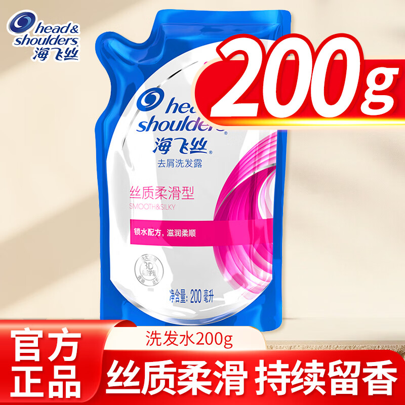 海飞丝洗发水g袋装补充装去屑去油家庭实惠装 海飞丝丝质柔滑洗发水200g*1袋