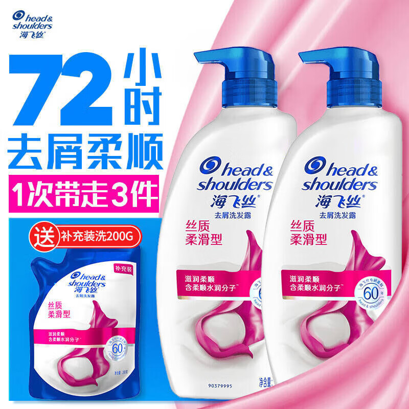 海飞丝洗发水 丝质柔滑700克*2瓶+200克补充装 男女通用 新老包装随机