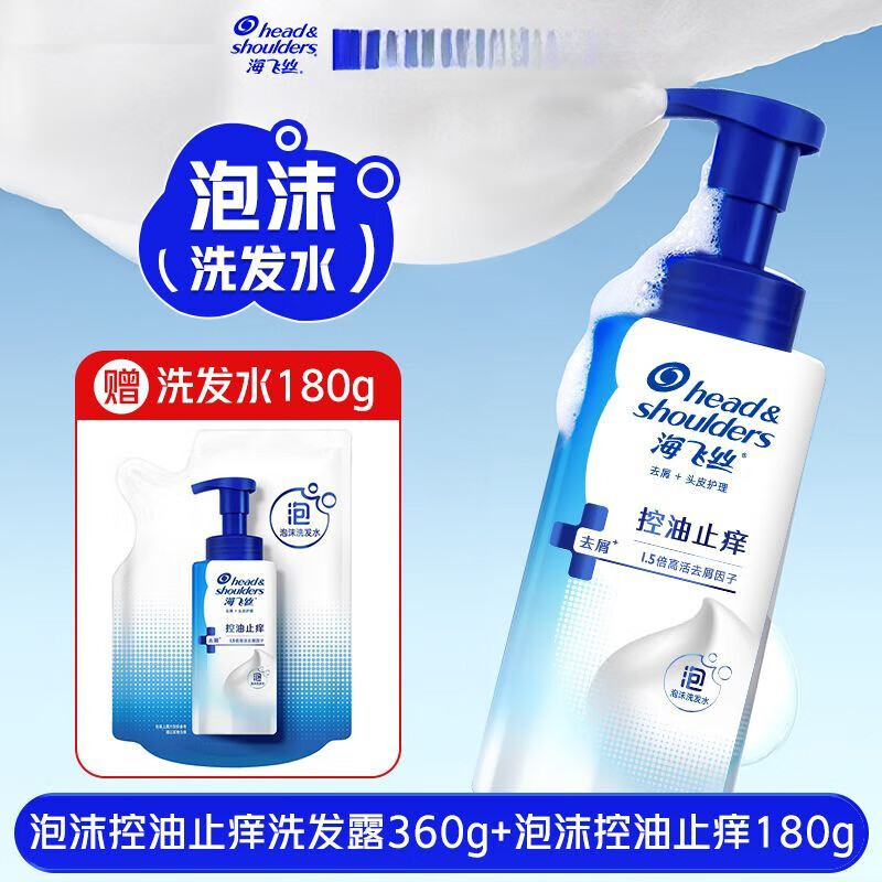 海飞丝泡沫去屑控油止痒洗发水男士女生洗发 [赠送180g补充装]泡沫洗发水36