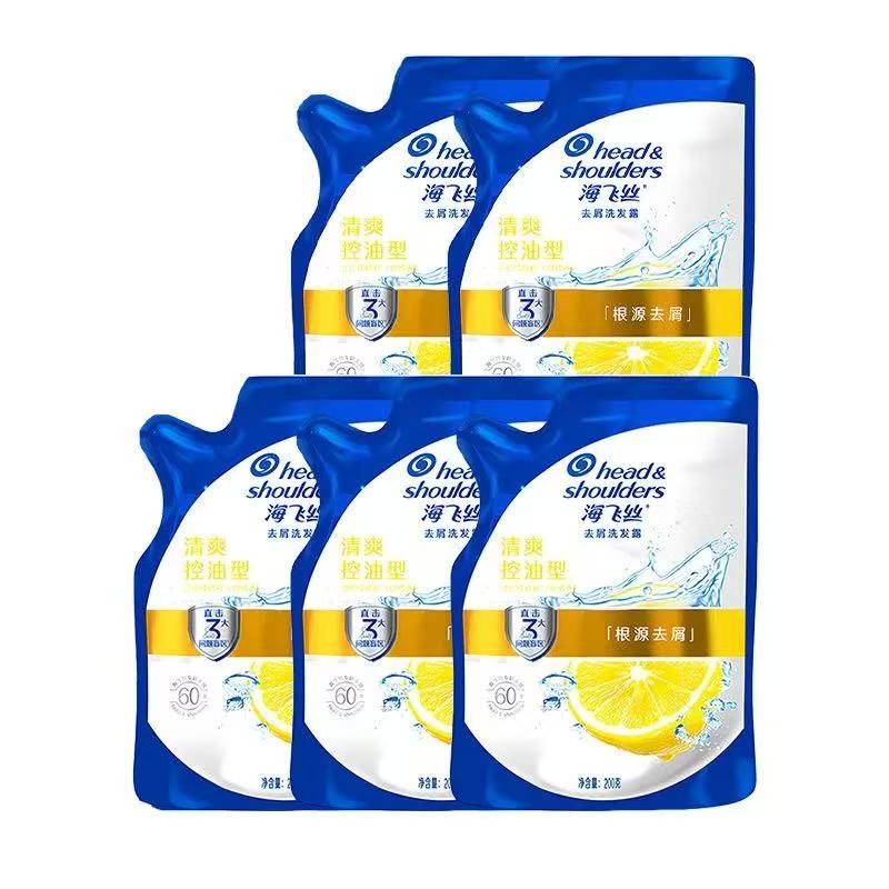 海飞丝洗发水补充装200ml清爽控油去屑止痒清爽去油洗发水正品 200ml海飞丝去油洗发水袋装5袋