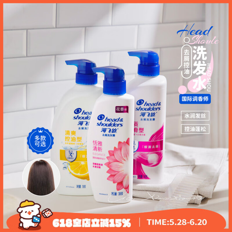 海飞丝多款任选海飞丝洗发水去屑蓬松洗头膏补充正装淡雅花香控油蓬松 清爽去油洗发水 500g