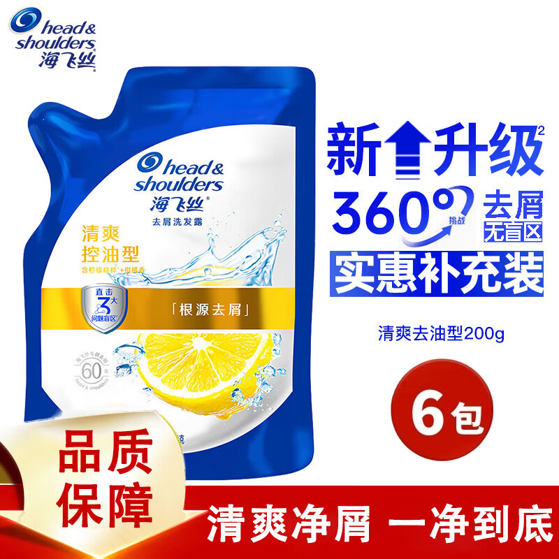 海飞丝洗发水去屑清爽去油柠檬香洗头膏男女通用便捷装洗发露补充包6包