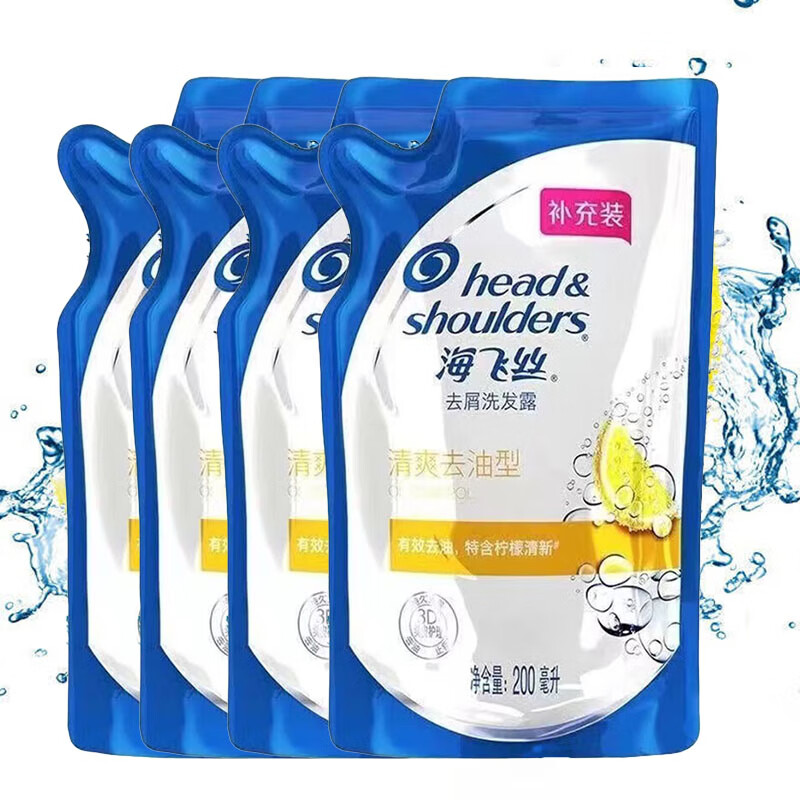 海飞丝洗发水 清爽去油200ml/g*4袋补充装洗发露 (新老包装随机)