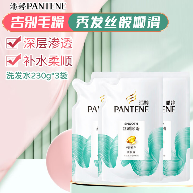 潘婷(PANTENE)洗发水丝质顺滑氨基酸修护干枯发质水润亮泽男女士通用 丝质顺滑-洗发水补充装 230g*3袋