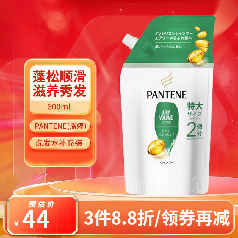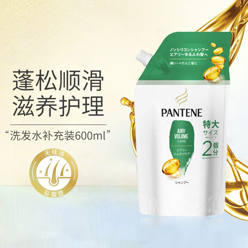 潘婷(PANTENE)Pantene潘婷 洗发水 Airy蓬松护理无硅油洗发水蓬松护发浸透保湿 洗发水补充装600ml