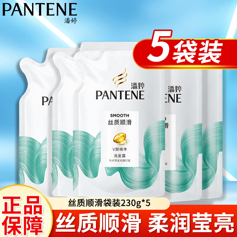 潘婷洗发水丝质顺滑柔顺抚平修护毛躁干枯补充装230g 丝质顺滑洗发水*5袋