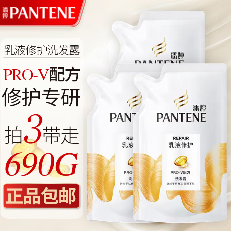 潘婷洗发水护发潘婷洗发乳乳液修护发水洗发露230g女士洗发水补充装 乳液修护洗发水230克袋装3袋