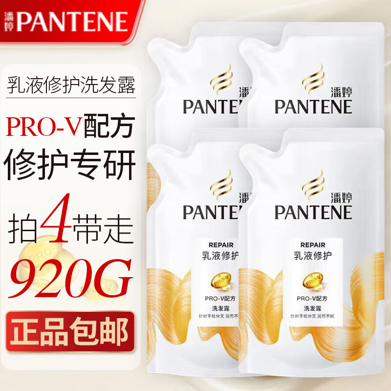 潘婷洗发水护发潘婷洗发乳乳液修护发水洗发露230g女士洗发水补充装 乳液修护洗发水230克袋装4袋