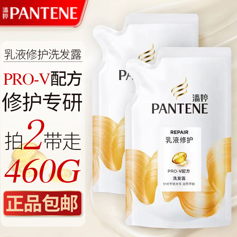 潘婷洗发水护发潘婷洗发乳乳液修护发水洗发露230g女士洗发水补充装 乳液修护洗发水230克袋装2袋