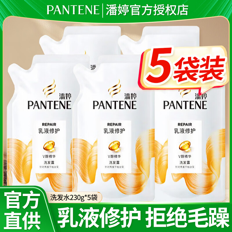 潘婷洗发水护发潘婷洗发乳乳液修护发水洗发露230g女士洗发水补充装 乳液修护洗发水230克袋装5袋