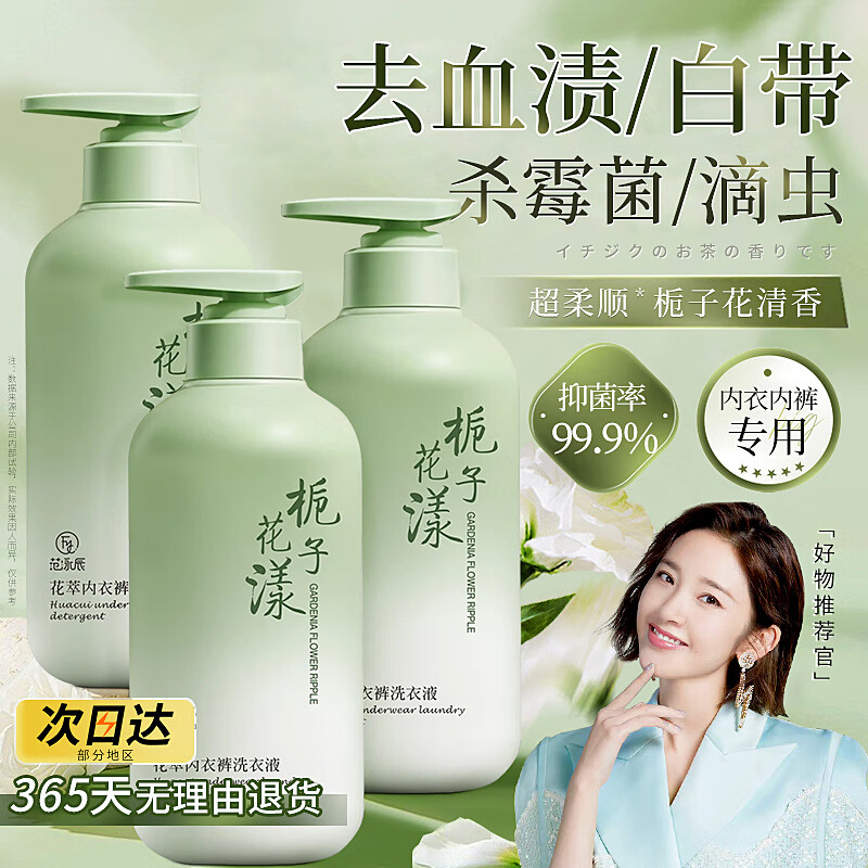 范泳辰栀子花内衣内裤专用洗衣液除菌抑菌去黄去血渍清洗液孕妇女士家用 栀子花漾内衣裤洗衣液500ml*3瓶