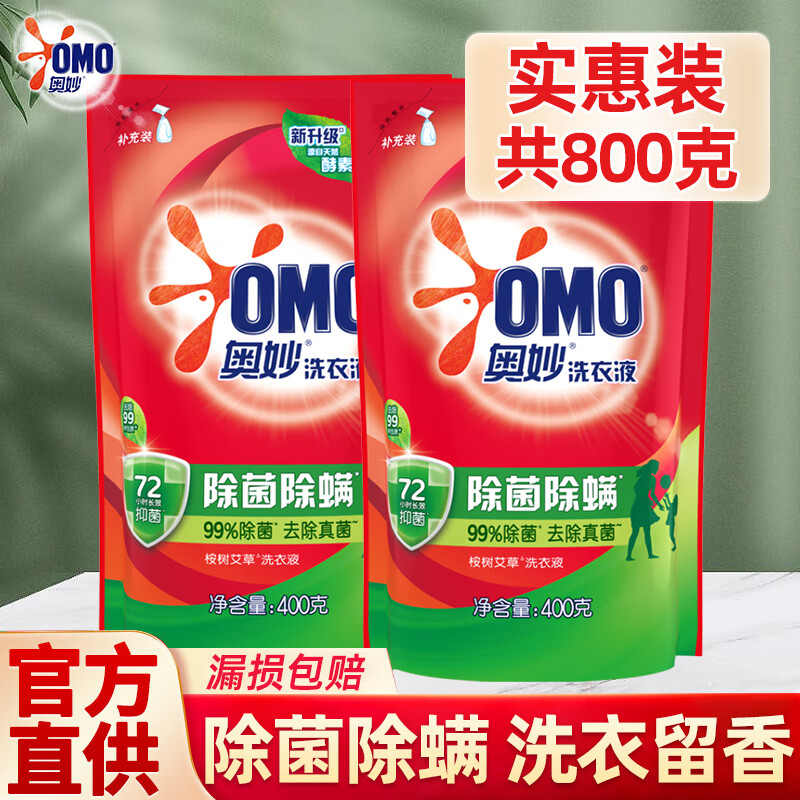 奥妙洗衣液除螨洗衣液杀螨除菌持久留香袋装洗衣液除螨补充装机洗 洗衣液400g*2袋