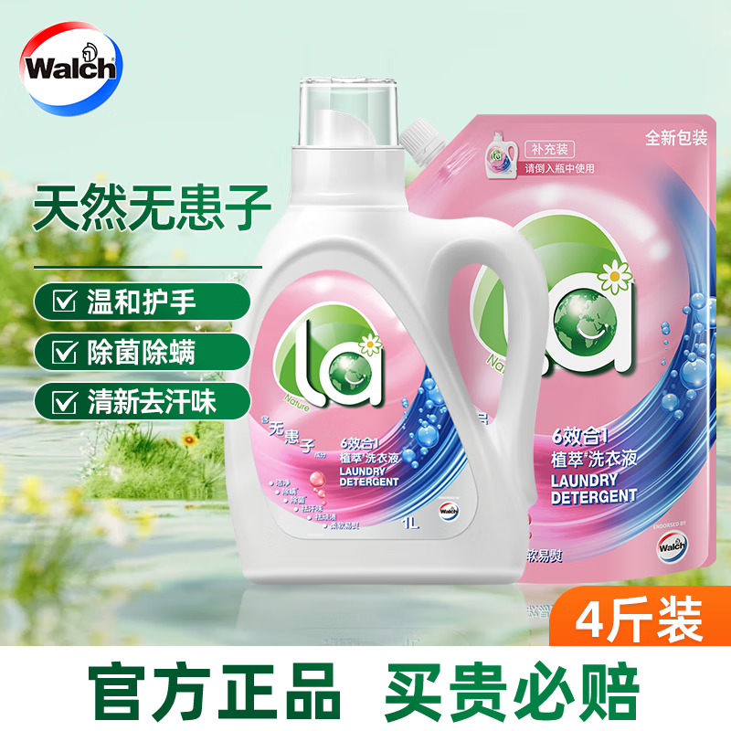 威露士la有氧洗衣液松木香4斤组合装(瓶1L+补充袋装500ml*2)除菌除螨