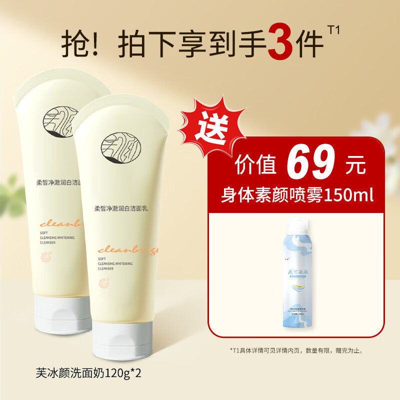 芙冰颜【芙冰颜洗面奶】芙冰言祛斑去黄洁面乳马齿苋官方正品旗舰店 2支 洗面奶送【69元】素颜喷雾