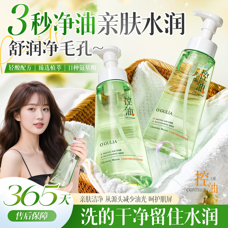 【官方旗舰】水杨酸洗面奶氨基酸控油祛痘泡泡慕斯男女士专用官方旗舰店正品护理 550ml