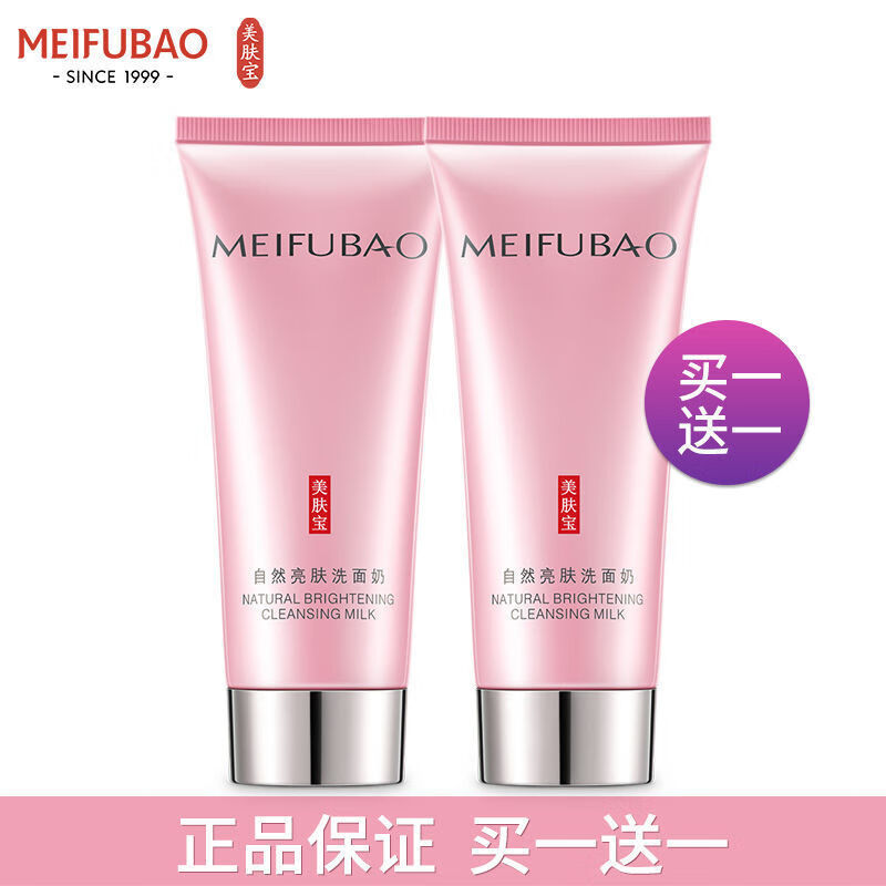 美肤宝(MEIFUBAO)洗面奶洁面乳自然亮肤温和洁面膏女深层清洁官方旗舰店正品 100ml (买1送1,2支装)