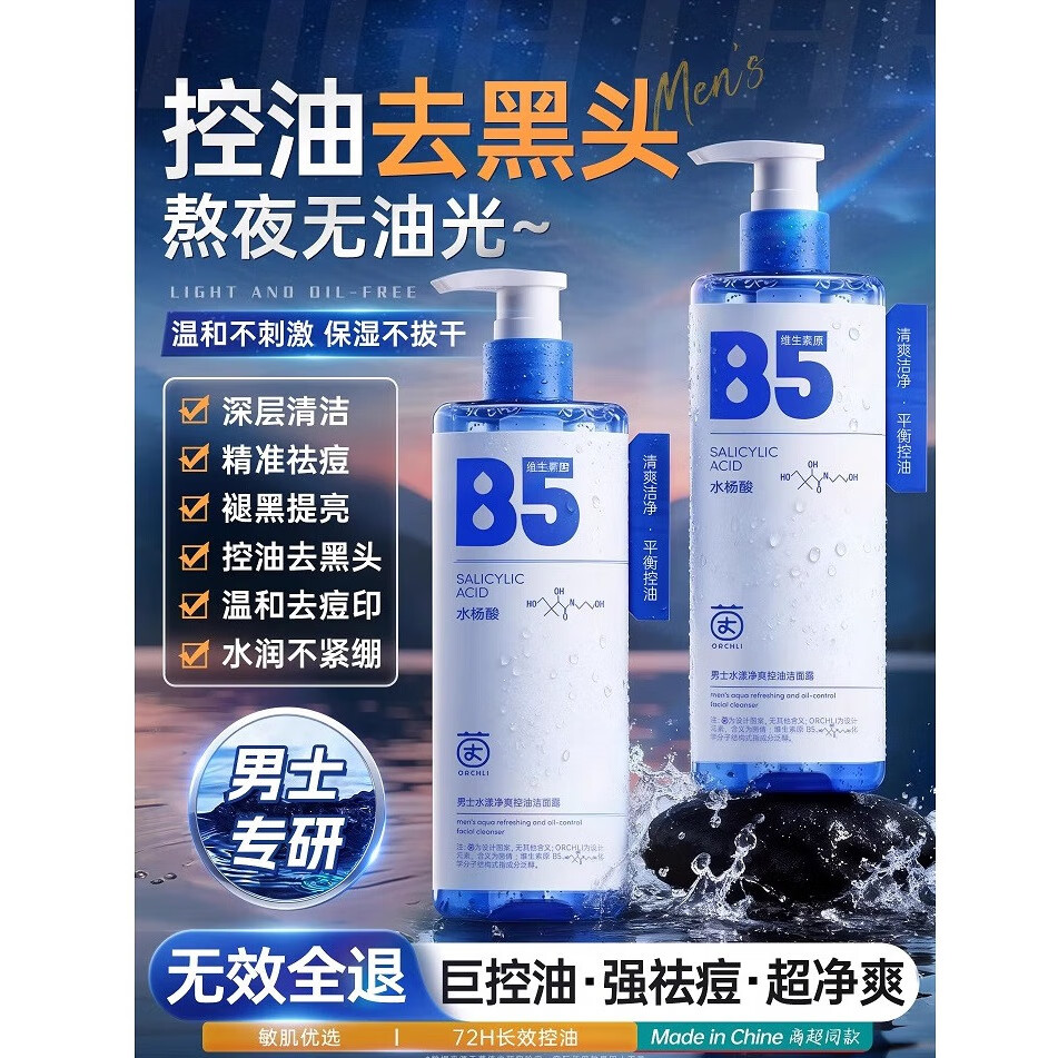 茵倩洗面奶男士专用控油去黑头祛痘氨基酸清洁面乳清爽官方旗舰店正品 2瓶装 【0油痘收缩毛孔】