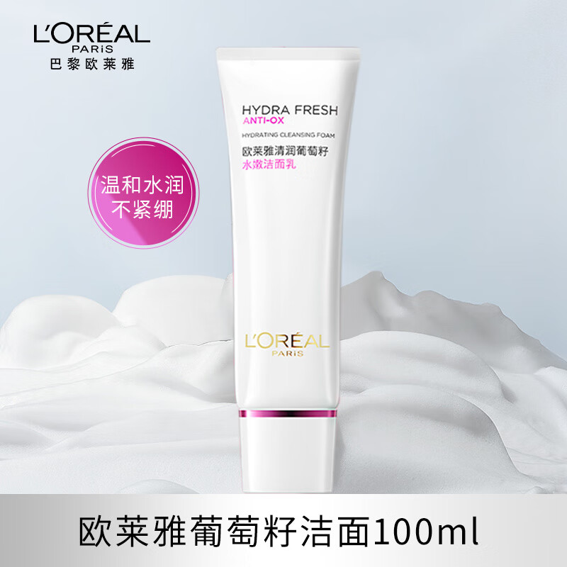 欧莱雅氨基酸洗面奶女深层温和清洁毛孔复颜洁面乳正品官方旗舰店 葡萄籽洁面100ml