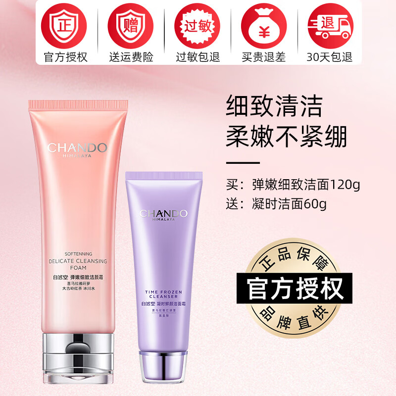 自然堂(CHANDO)洗面奶女弹嫩细致洁面乳深层清洁毛孔官方旗舰店正品 120g 送60g洁面