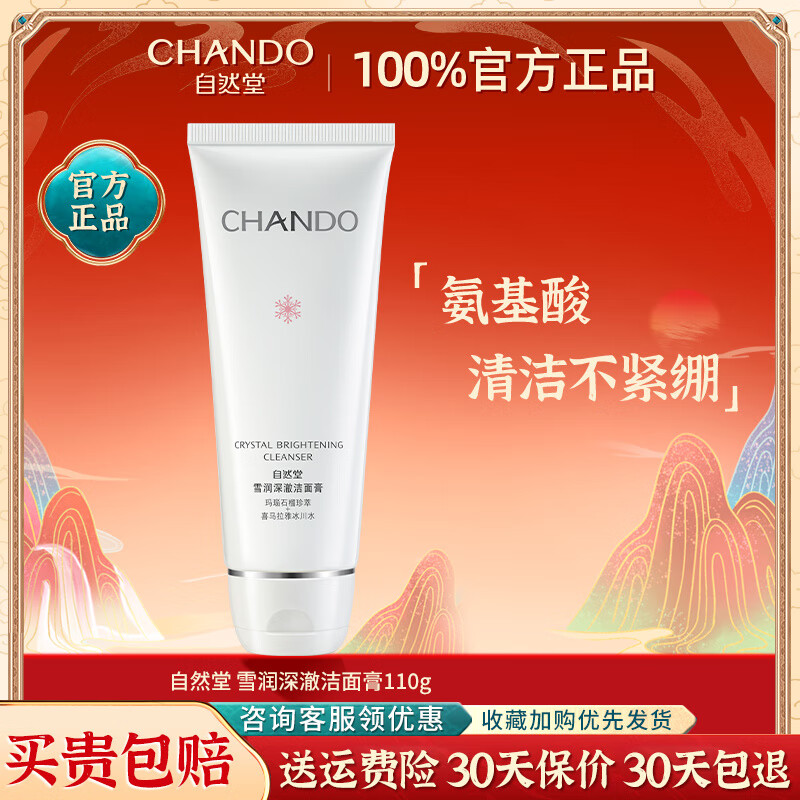 自然堂(CHANDO)雪润氨基酸洗面奶官方旗舰店清洁卸妆提亮肤色女洁面乳官方正品旗 110ml
