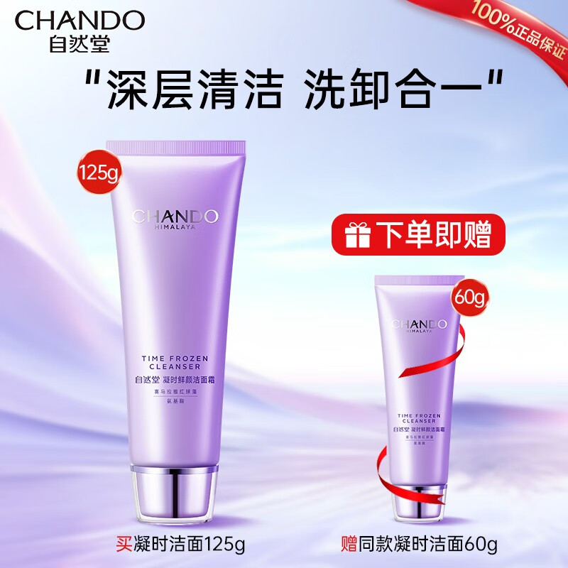 自然堂(CHANDO)凝时洗面奶女氨基酸洗面乳清洁洗卸合一官方旗舰店女士官方正品旗 125g