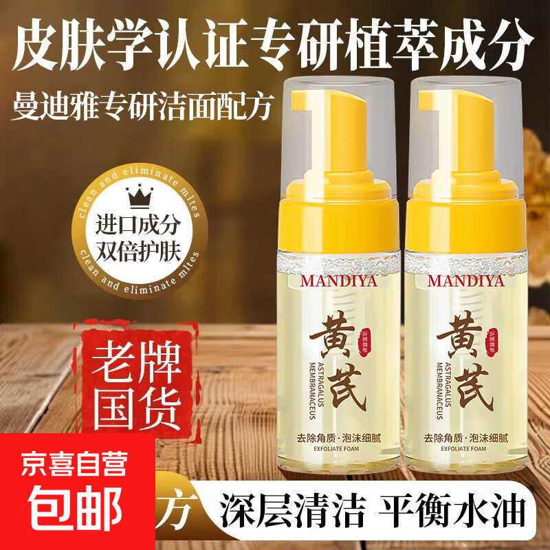 黄芪洁面慕斯洗面奶官方旗舰店正品深层清洁毛孔保湿亮肤洁面乳女 mandiya洁面慕斯*2