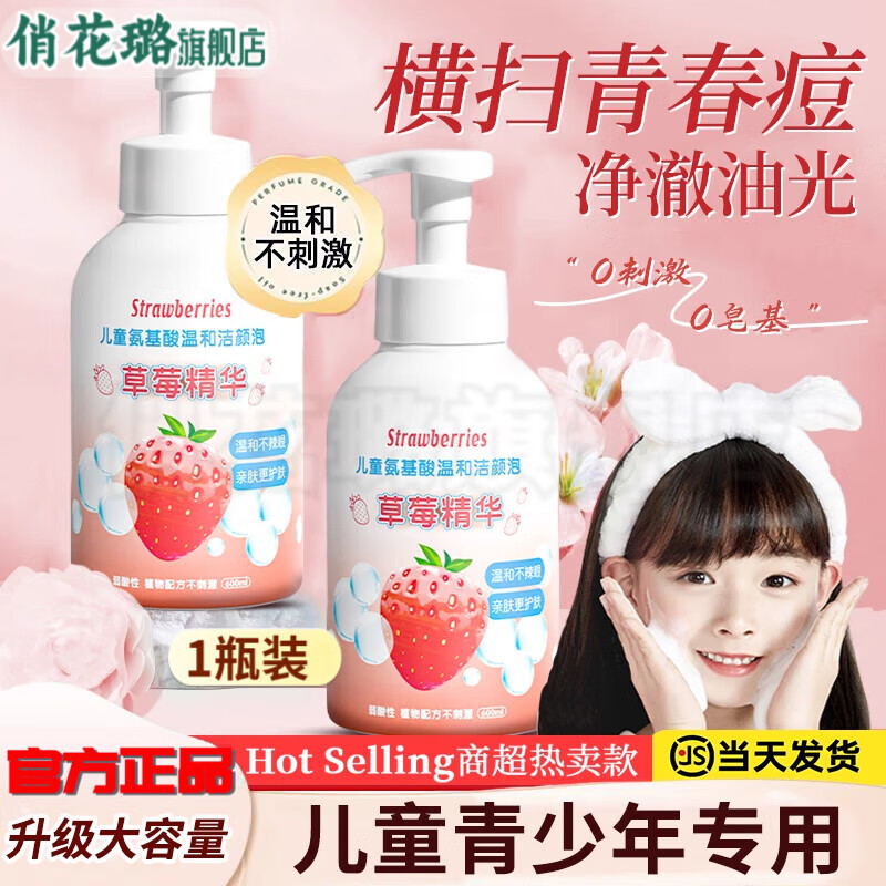 俏花璐儿童洗面奶去黑头氨基酸青少年泡沫祛控油去黑头痘12岁以上男学生 儿童洗面奶去黑头*1瓶 官方旗舰店直营正品