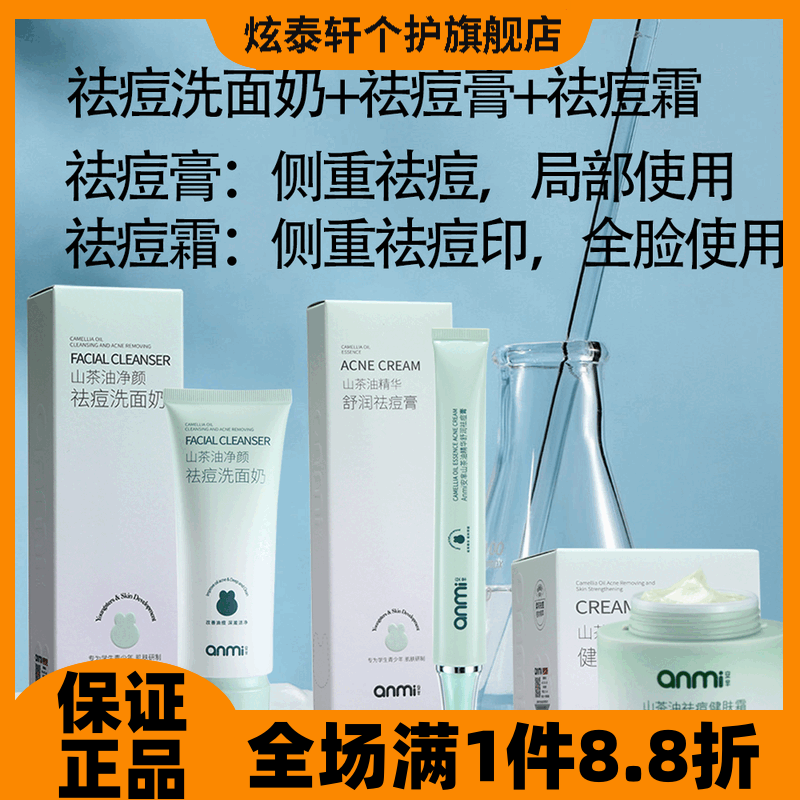 山茶控油祛痘面霜青少年淡化痘印学生舒缓粉刺官方旗舰店正品 祛痘霜+祛痘洗面奶+祛痘膏