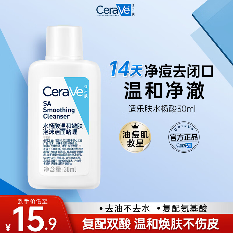 适乐肤CeraVe水杨酸小样清洁洗面奶敏感肌去黑头30ml护肤品礼物 水杨酸 水杨酸洗面奶30ml(赠洗脸巾)