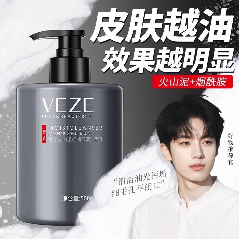 VEIGAR洗面奶男士专用清爽控油去黑头洁面收缩毛孔排行榜第 500g1瓶装男士专用