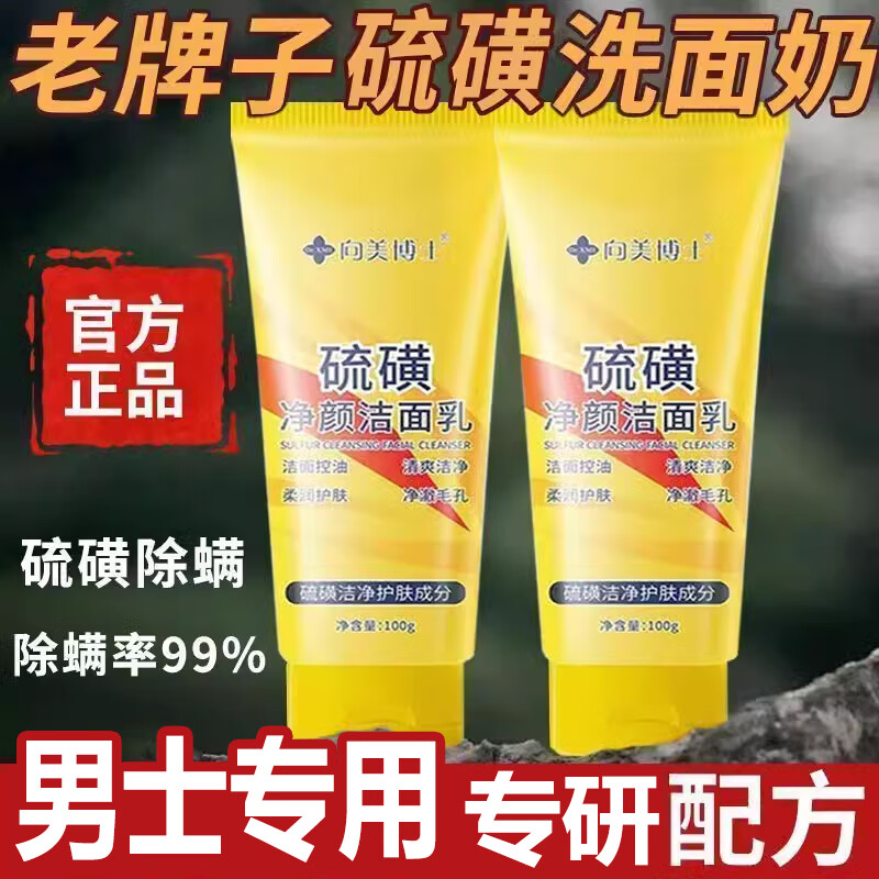 向美博士硫磺洗面奶男士专用祛痘控油除螨深层清洁毛孔粗大去黑头补水保湿 2瓶装【实惠装】200g